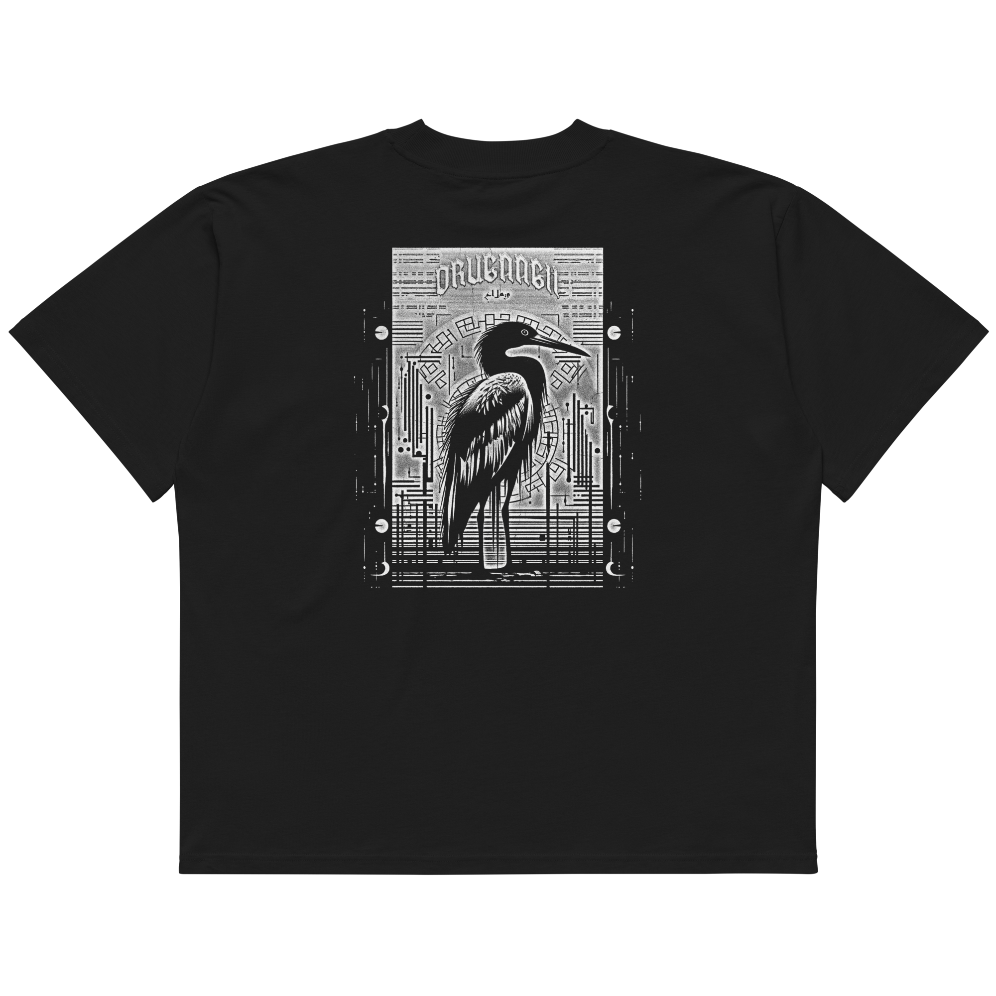 Pure organic cotton with Dr. Moro graphic on back and a stack of Orugaagii Supply logos on front. Oversized fit with dropped shoulders.