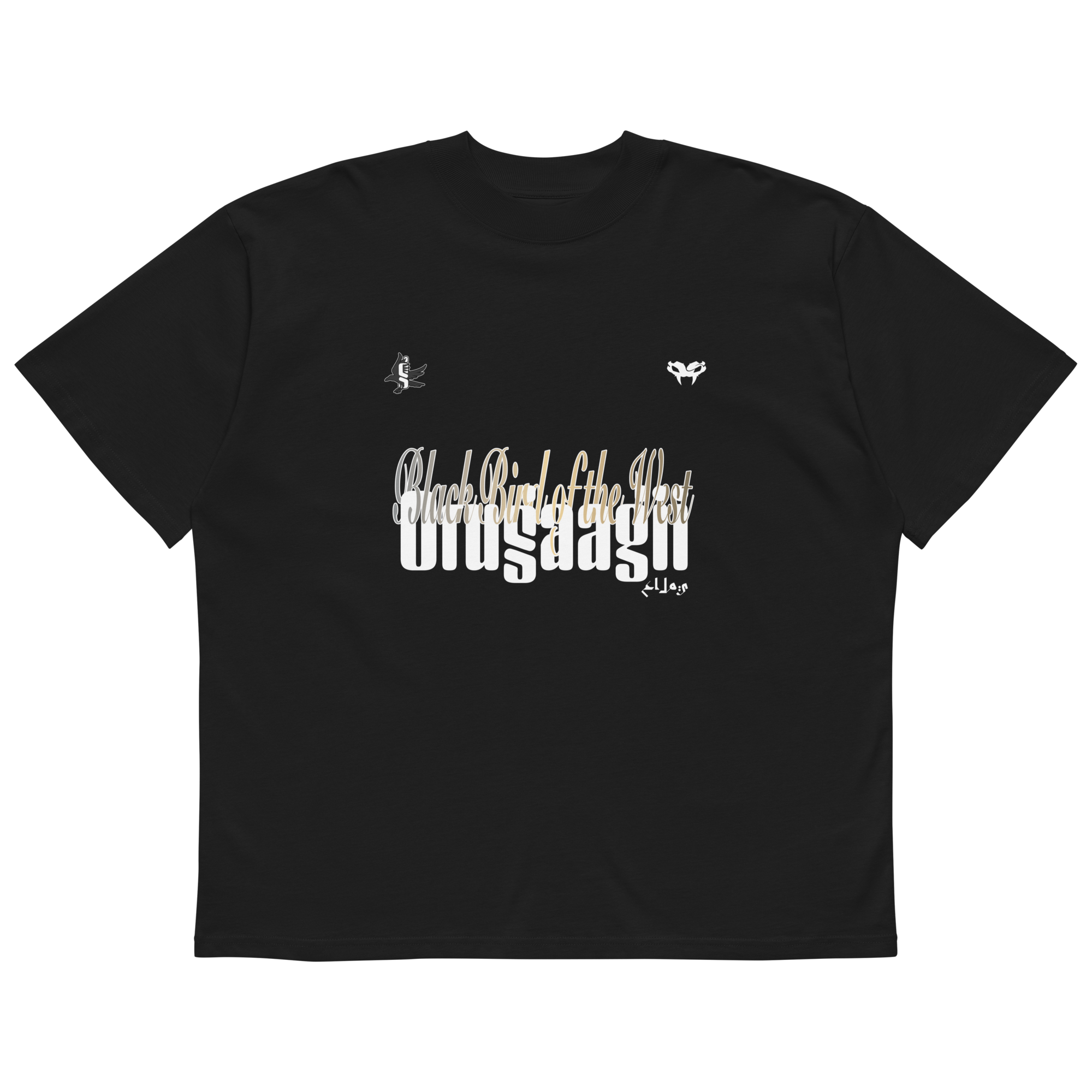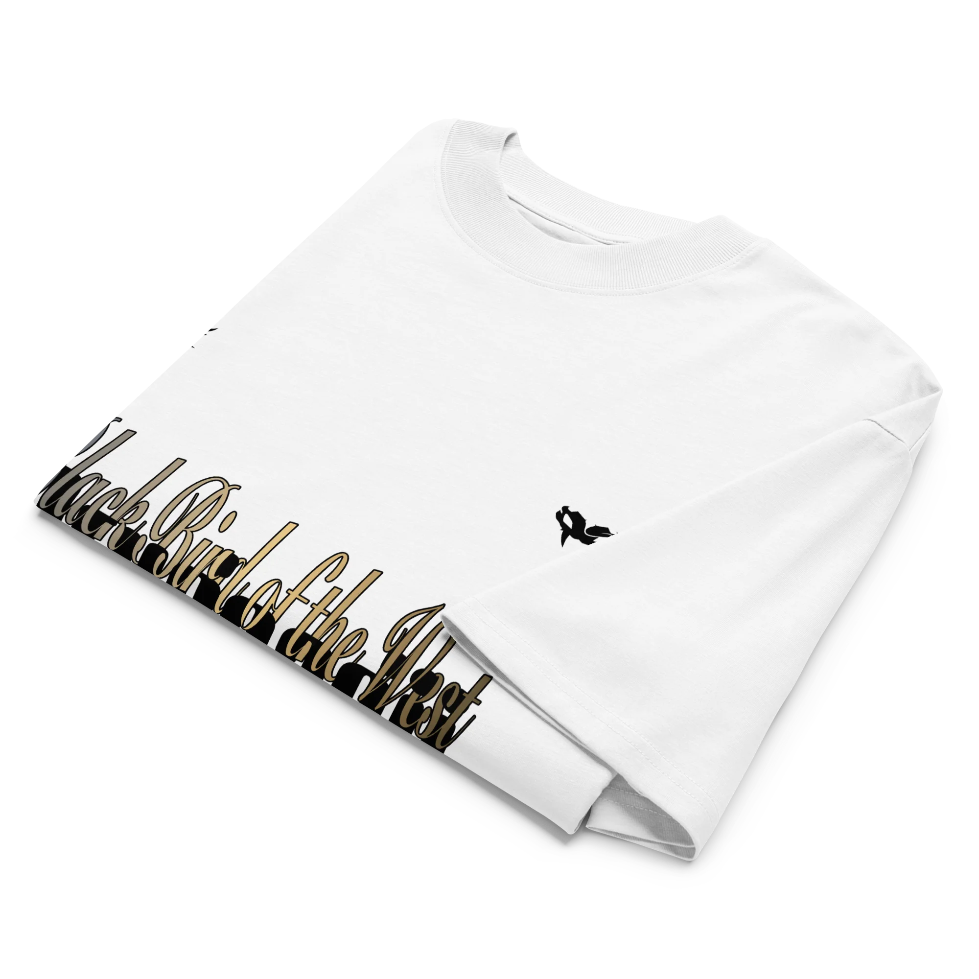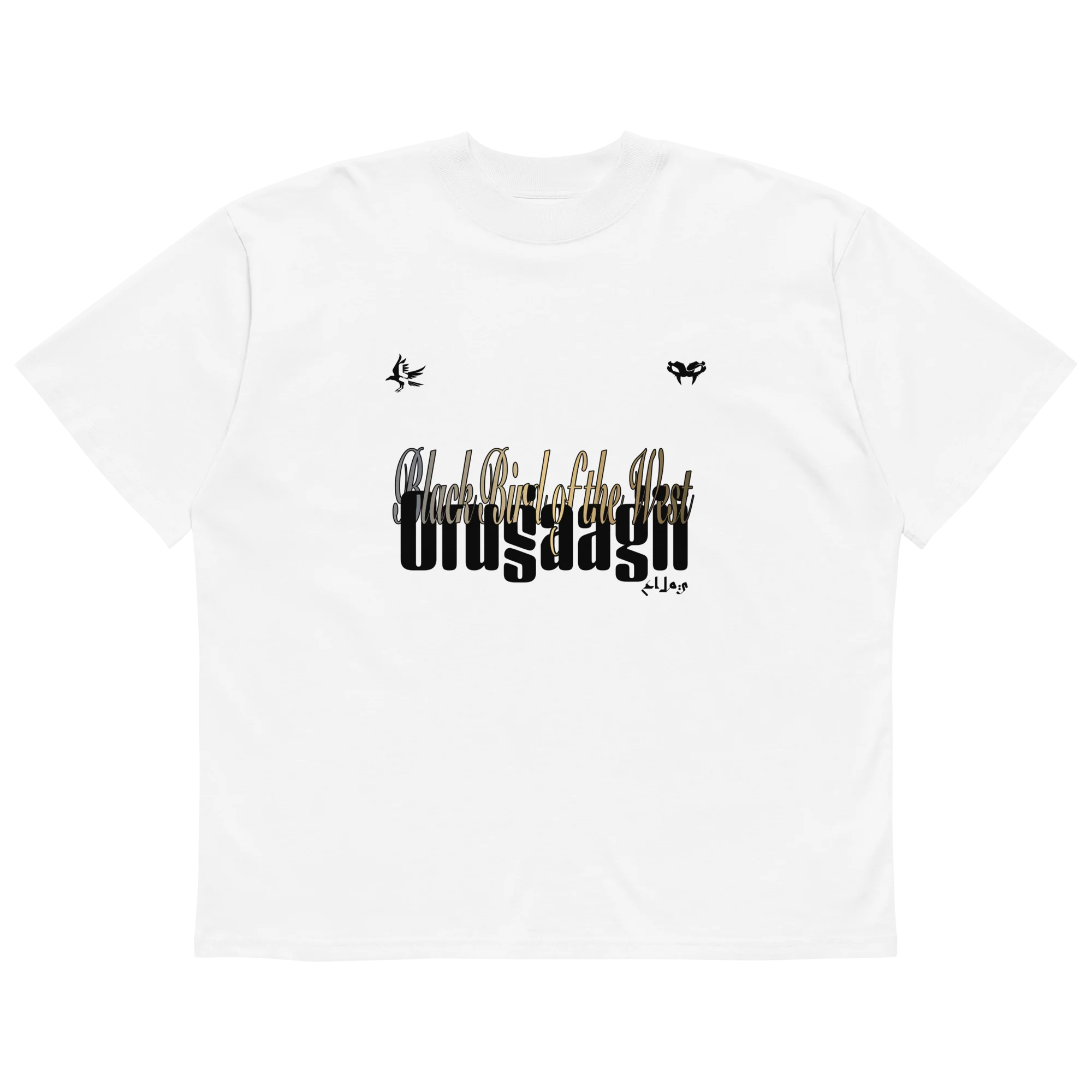 Pure organic cotton with a variant of the Black Bird of the West typographic treatment on front. Oversized fit with dropped shoulders.